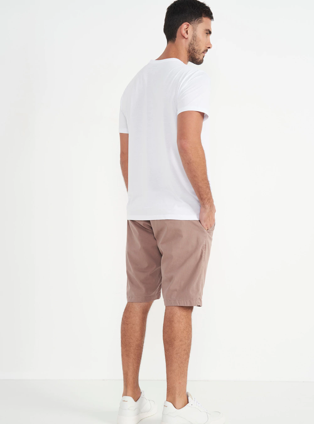 Como a Bermuda Sarja Reta Davi oferece praticidade, você pode usar uma camiseta lisa para passear ou até mesmo trabalhar.