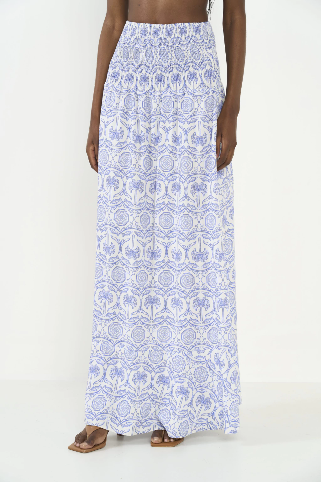 A Saia Longa Jade Estampada - Gingado Alto Verão 26 da COLCCI é a peça perfeita para capturar a essência da leveza, da intensidade e do movimento que define a coleção 'Gingado'. Com uma Cor em fundo branco, adornado por uma 'Estampa Geométrica Tropical' que mescla tons de azul e roxo (lilás), ela evoca a serenidade do mar e a energia vibrante do Alto Verão, prometendo um visual autêntico e cheio de atitude.Confeccionada em Tecido 100% Viscose, esta saia oferece um caimento fluido e um toque macio incomparável, garantindo frescor e máxima respirabilidade para os dias quentes. A fibra natural proporciona uma sensação agradável na pele e um movimento elegante a cada passo, em perfeita sintonia com o 'gingado' da temporada.O Design apresenta uma modelagem longa e ampla evasê, que confere volume e um balanço gracioso, com cintura alta e cós em lastex que proporciona ajuste perfeito e conforto. A saia é trabalhada em camadas ou franzidos delicados que criam um movimento fluido e uma silhueta descontraída e sofisticada. Entre os Detalhes, a estampa geométrica inspirada em azulejos ou padrões florais marítimos é o ponto focal, adicionando um dinamismo visual inovador. O cós em lastex garante flexibilidade e um caimento impecável. Sua Funcionalidade reside na versatilidade para criar looks que transitam do casual chic à elegância despojada, ideal para um dia de verão ou um evento especial, sempre com a atitude e o frescor que a COLCCI propõe.